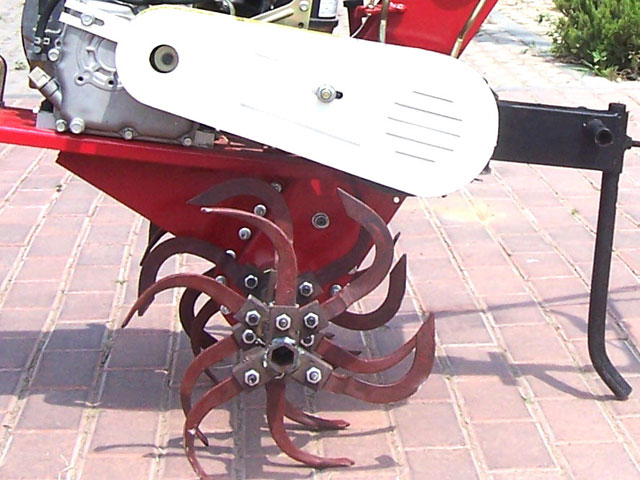 4.在倒車、過田埂和轉移地塊時,應將旋耕機提升到最高位置,并切斷動力,以免損壞機件。如向遠處轉移,更換下旋耕刀換上行走輪或者用鎖定裝置將旋耕機固定好。